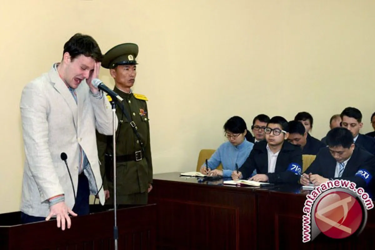 Warmbier terbukti bersalah atas pelanggaran terhadap negara karena mencoba mencuri poster propaganda dari sebuah hotel Pyongyang dan dijatuhi hukuman kerja paksa 15 tahun.