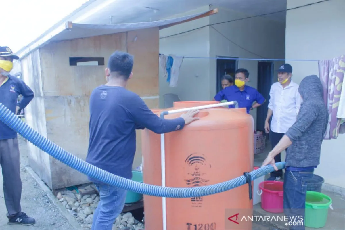 Palu (ANTARA) - Penyintas bencana gempa yang menempati hunian sementara (huntara) Muhammadiyah Disaster Management Center (MDMC), di Kelurahan Donggala Kodi, Kecamatan Ulujadi, Kota Palu, Sulawesi Tengah, Senin mendapat bantuan air bersih dari Dewan Pimpinan Daerah (DPD) NasDem Palu.
