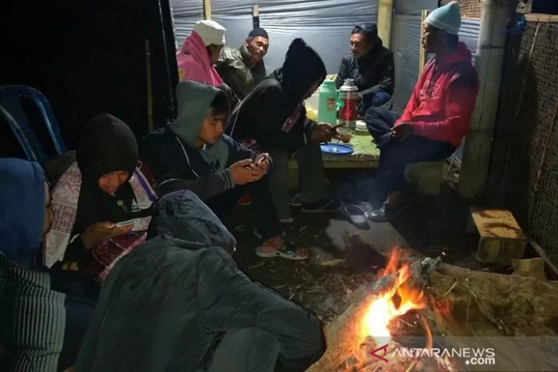 Sejumlah warga kawasan Gunung Andong di Dusun Mantran Wetan, Desa Girirejo, Kecamatan Ngablak, Kabupaten Magelang ronda untuk mencegah kejahatan dampak pandemi COVID-19. (ANTARA/HO-Komunitas Lima Gunung Kabupaten Magelang)