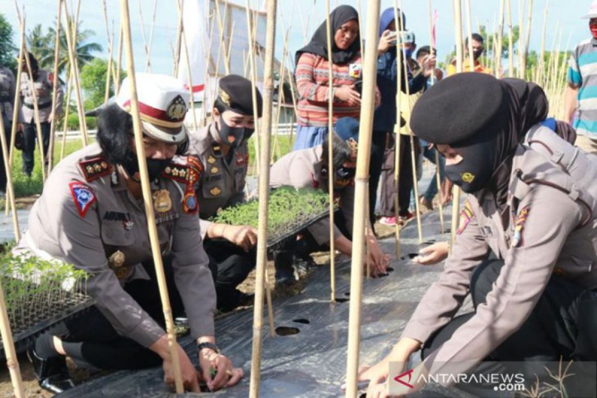 Palu (ANTARA) - Polisi Wanita (Polwan) Polda Sulawesi Tengah (Sulteng) membagi-bagikan bibit ikan dan tanaman tomat kepada masyarakat desa di Kabupaten Donggala sebagai upaya memperkuat ketahanan pangan dan peningkatan ekonomi masyarakat di masa pandemi COVID-19.