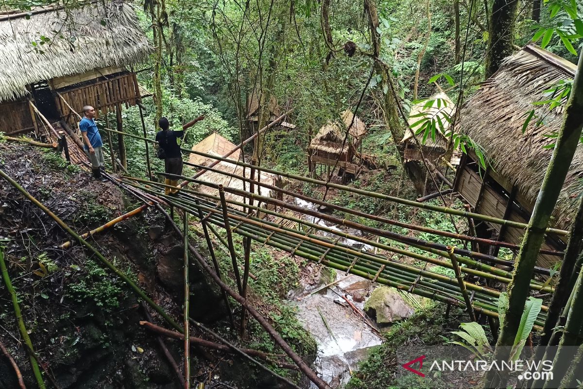 Sejumlah warga setempat sedang beraktivitas di objek wisata alam rumah pohon di kawasan hutan lindung Desa Tavanggeli, Kabupaten Donggala, Sulawesi Tengah, Sabtu (13/2/2021). Objek wisata alam tersebut sebanyak 12 bangunan dibangun menggunakan dana swadaya masyarakat dalam rangka mendukung pengingkatan sektor pariwisata di Donggala. ANTARA/Moh Ridwan