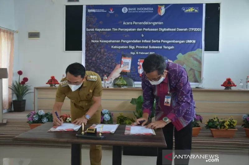BI Perwakilan Sulteng dengan Pemkab Sigi juga telah melaksanakan penandatanganan nota kesepahaman tentang Kerjasama Pengendalian Inflasi, Pengembangan Klaster Ketahanan Pangan dan Usaha Mikro Kecil dan Menengah, yang diikutkan dengan pembentukan Tim Perluasan dan Percepatan Digitalisasi Daerah di Kabupaten Sigi.