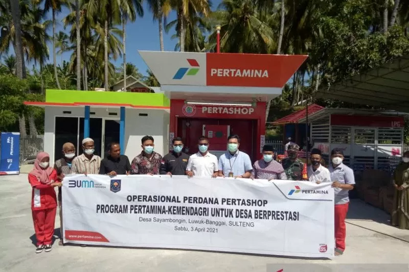 Pengoperasian perdana lembaga penyalur resmi atau Pertashop di Desa Sayambongin, Kecamatan Nambo, Kabupaten Banggai kerja sama PT Pertamina (Persero) dan Kemendagri, di Luwuk, Sabtu (3/4/2021). ANTATA/HO/Humas Pertamina MOR VII