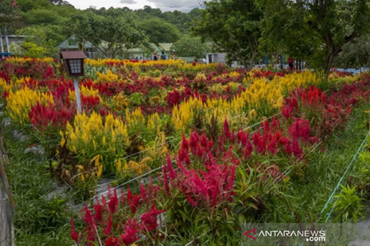 Sejumlah pengunjung berwisata di Taman Bunga di Desa Bora, Kabupaten Sigi, Sulawesi Tengah, Minggu (4/4/2021). Taman yang dihiasi aneka bunga berwarna-warni itu ramai dikunjungi warga sekitarnya pada setiap hari libur. ANTARAFOTO/Basri Marzuki/nz