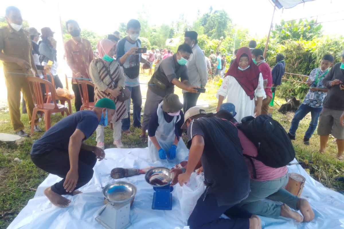 "Kalau proses penimbangan sudah cukup masing-masing 1 kilogram namun masih ada kelebihan daging, maka kami menambah jumlah timbangan, bisa jadi kepala keluarga menerima 2 kilogram daging," kata dia menambahkan.