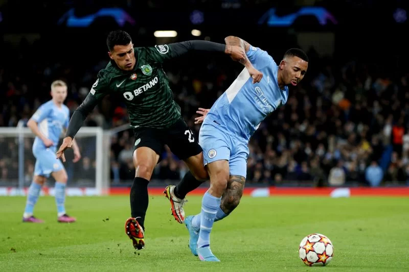 Pelatih Pep Guardiola membuat beberapa perubahan pada tim utamanya di mana salah satu di antaranya, Raheem Sterling, hampir mencetak gol pada babak pertama setelah tendangan jarak dekatnya diselamatkan kiper Sporting.