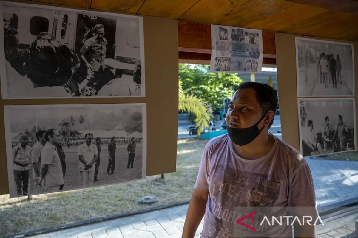 Pengunjung memerhatikan foto-foto tragedi jatuhnya pesawat Merpati karya almarhum Datlin Tamalagi yang dipamerkan di Palu, Sulawesi Tengah, Senin (28/3/2022). Pameran foto itu digelar untuk mengenang kembali tragedi jatuhnya pesawat milik maskapai Merpati Nusantara Airlines jenis DHC-6 Twin Otter bernomor registrasi PK-NUP di Pegunungan Tinombala, Kabupaten Parigi Moutong pada 29 Maret 1977 yang menewaskan 15 orang dari 26 orang penumpangnya termasuk kru pesawat. ANTARA/Basri Marzuki