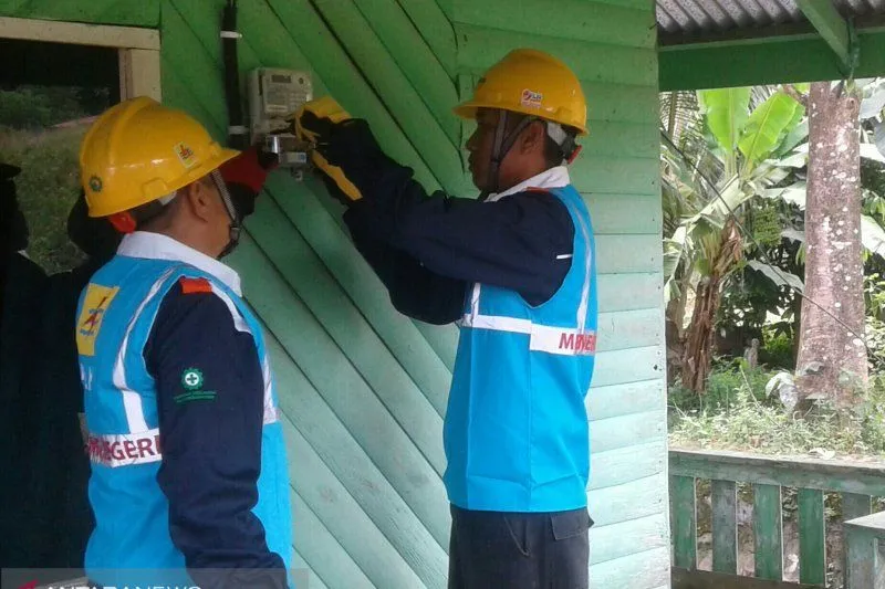 Ilustrasi - Dua petugas teknis PLN terlihat sedang pembenahan meteran sambungan jaringan listrik ke rumah pelanggan rumah tangga. ANTARA/HO/PLN