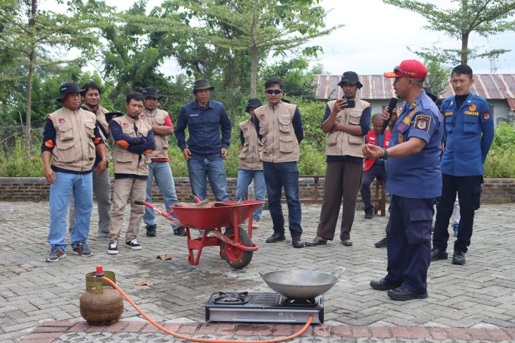 Peserta dilatih langsung Satuan Polisi Pamong Praja dan Pemadam Kebakaran mengenai cara menangani kebakaran menggunakan alat pemadam api ringan (APAR).