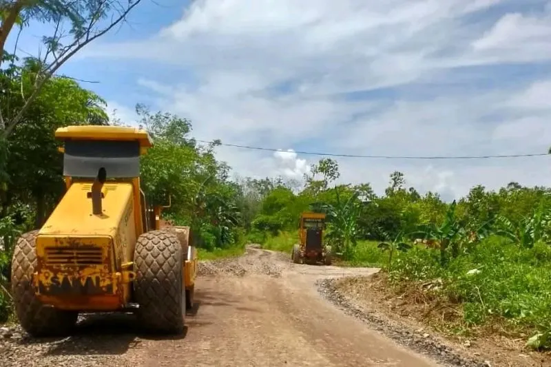 Dari pantauan pantauan di lapangan kegiatan peningkatan jalan tersebut, Senin (27/2), menyaksikan tiga unit alat berat sedang bekerja yakni sebuah grader (alat berat yang meratakan permukaan jalan), sebuah excavator untuk menggali parit dan sebuh stonewalls alias bomag, alat berat untuk memadatkan badan jalan.