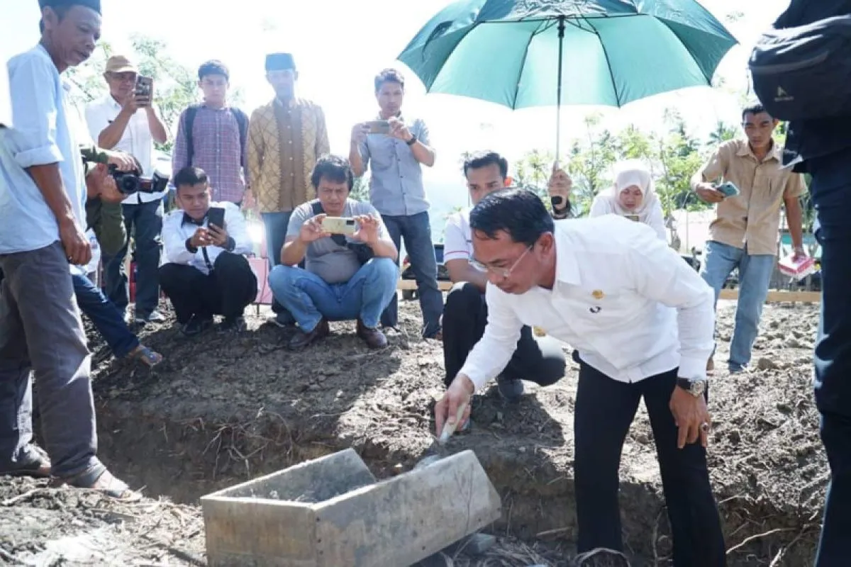 Bupati Irwan melakukan peletakan batu pertama pembangunan Mushalla Nurul Hidayah Desa Sibalaya Barat, Kecamatan Tanambulava.