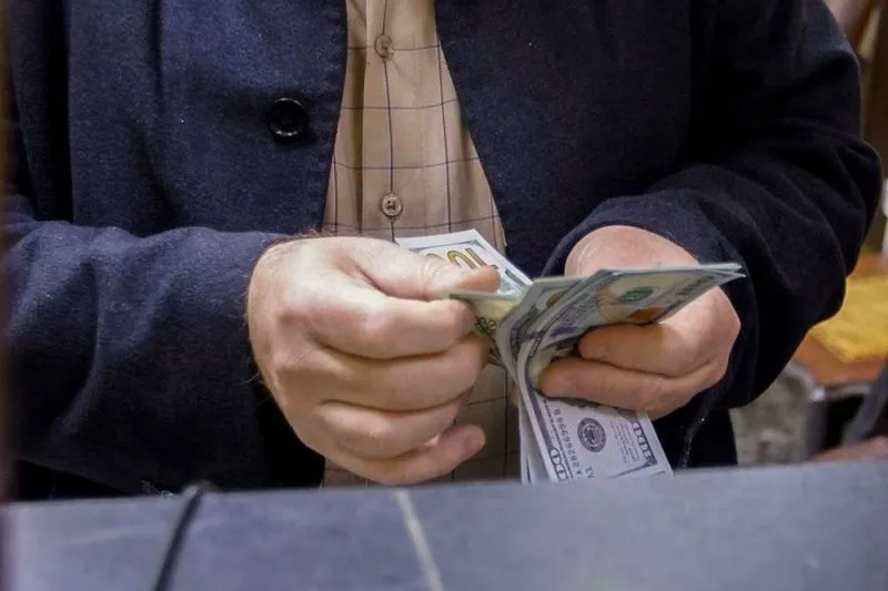 Seorang pria menghitung uang dolar AS di toko penukaran valas di Baghdad, Irak, 23 Januari 2023. REUTERS/Ahmed Saad/as