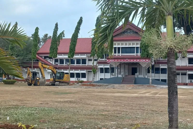 Proses renovasi tiang bendera dan pagar Kantor Wali Wota di Jalan Balai Kota Timur, Kecamatan Mantikulore, Kota Palu dimulai. Sebagai langkah awal untuk transformasi perkotaan yang lebih modern, dinamis, dan suatu era baru bagi warga Palu. Foto ANTARA/Gita magang
