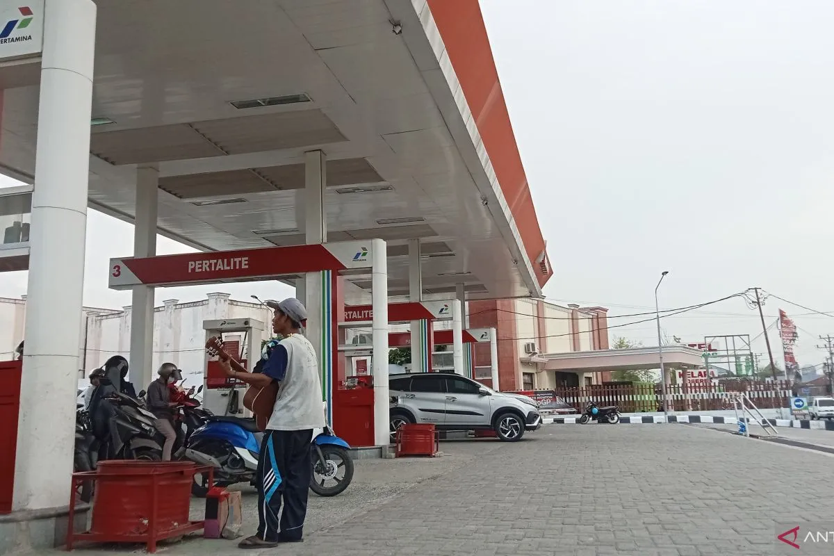 Pengamen jalanan yang menghibur pengendara di SPBU Kota Palu