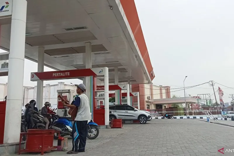 Pengamen-pengamen berbakat di Stasiun Pengisian Bahan Bakar Umum (SPBU) di Kota Palu memerdukan para pengendara dengan musik yang mereka iringi. Foto ANTARA/Christy magang