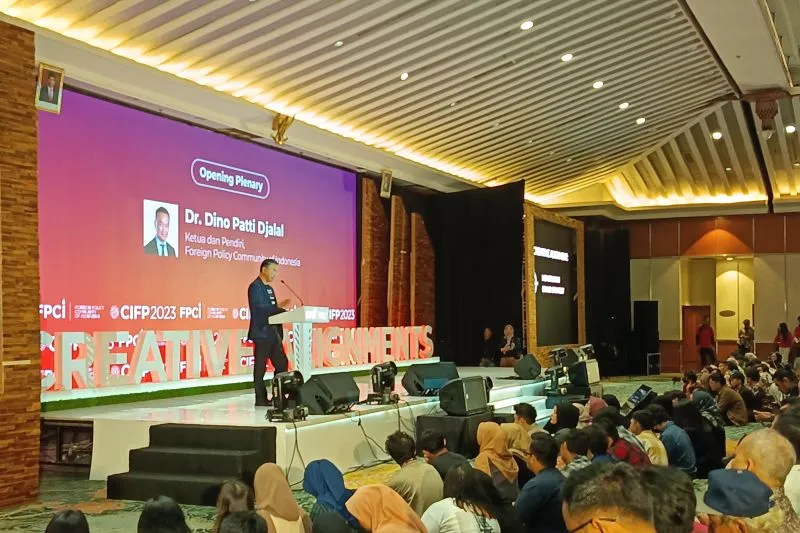 "Presiden terpilih pada (Pemilu) 2024 harus paham bahwa sebagian besar aset yang diperlukan untuk kesejahteraan Indonesia ada di luar wilayah Indonesia; apakah modal, teknologi, jaringan, dan termasuk juga senjata," kata Dino di hadapan 10 ribu peserta CIFP 2023 yang terdiri atas duta besar, mahasiswa, dan undangan.