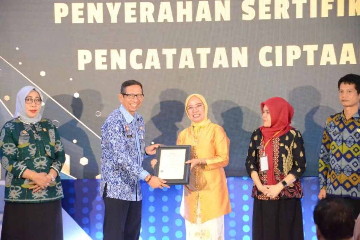 Palu (ANTARA) - Kepala Kantor Wilayah Kementerian Hukum dan Hak Asasi Manusia (Kemenkumham) Sulawesi Tengah (Sulteng) Hermansyah Siregar menyerahkan empat sertifikat hak cipta atas kekayaan intelektual kepada Pemerintah Provinsi Sulteng.