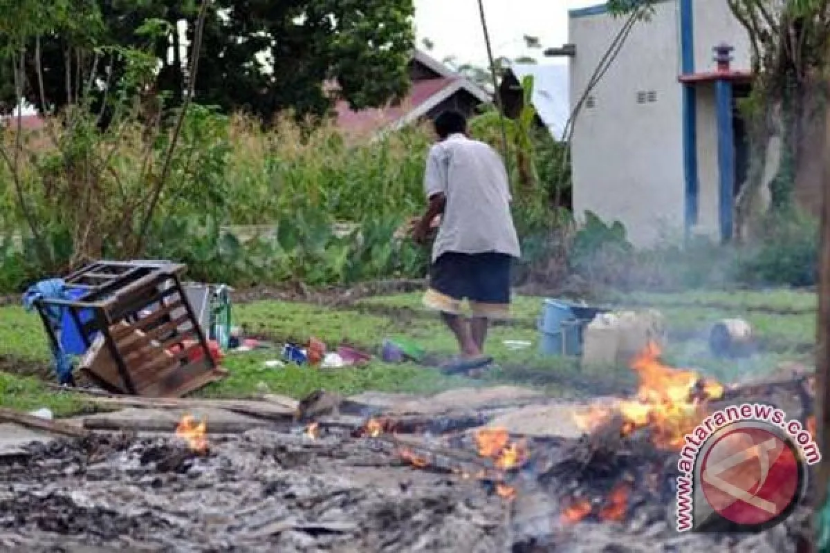 Belasan rumah dan sepeda motor dibakar. Sekitar 40 kepala keluarga mengungsi.