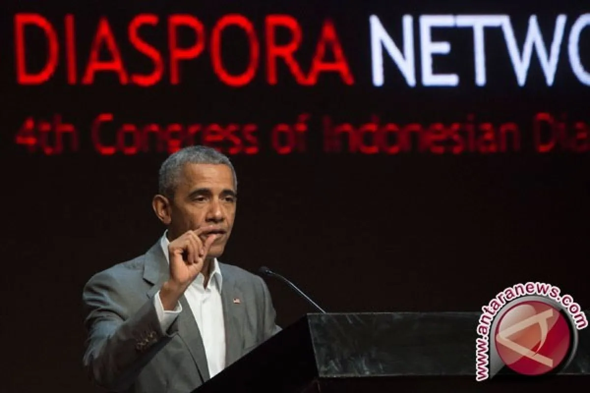 Obama yang mengenakan setelan jas berwarna abu-abu dengan kemeja putih itu memberikan pidato berdurasi sekitar 30 menit di hadapan ribuan diaspora Indonesia yang berkumpul di aula utama Kota Kasablanka, Jakarta, Sabtu.