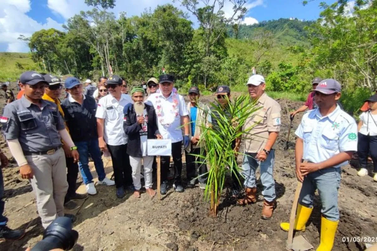 Palu (ANTARA) - Bupati Morowali Utara, Provinsi Sulawesi Tengah, Delis Julkarson Hehi, meresmikan kegiatan tanam perdana kebun kelapa sawit PT Cipta Agro Sakti (CAS) di Desa Menyo’e, Kecamatan Mamosalato, Kamis, (1/5).