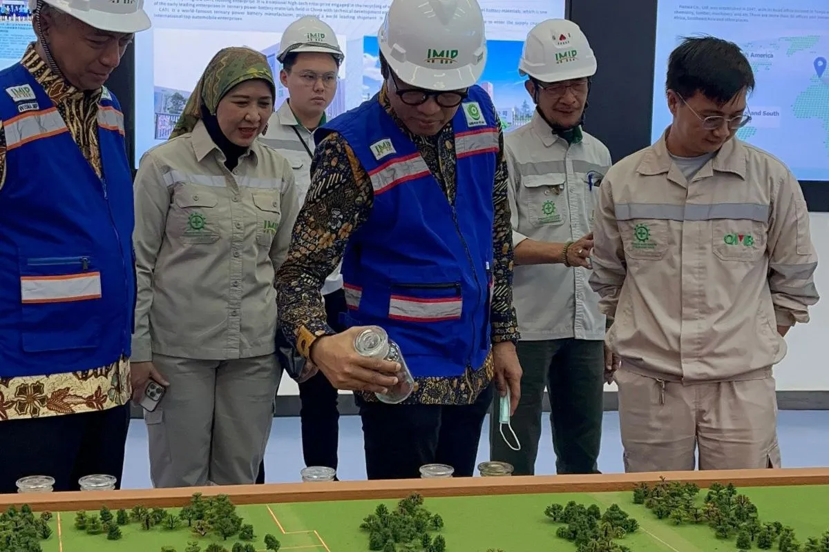 Rombongan melihat langsung proses produksi di kawasan IMIP, mulai dari pengolahan hingga produksi carbon steel, stainless steel, serta bahan baku baterai listrik di PT QMB New Energy Material.