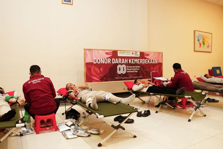 Morowali, Sulteng (ANTARA) - PT Indonesia Morowali Industrial Park (IMIP) kembali menggelar aksi kemanusiaan donor darah. Agenda tersebut menjadi bagian dari momentum peringatan hari ulang tahun (HUT) ke-80 Republik Indonesia dan rutin dilaksanakan setiap tiga bulan atau empat kali dalam setahun. Kegiatan donor darah kali ini melibatkan seluruh karyawan yang bekerja dalam kawasan industri, sejak tanggal 18-19 Agustus 2025.