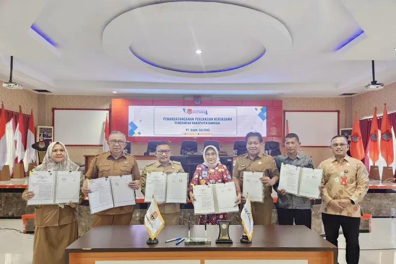 Banggai (ANTARA) - PT Bank Sulteng bersama Pemerintah Kabupaten Banggai menandatangani perjanjian kerja sama (PKS) implementasi aplikasi surat perintah pencairan dana (SP2D) online yang terintegrasi dengan sistem informasi pemerintahan daerah (SIPD) di Kantor Bupati Banggai, Luwuk, Selasa (19/8).