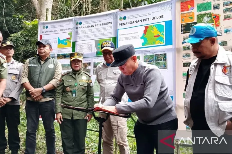 Sigi (ANTARA) - Pemerintah Kabupaten (Pemkab) Sigi dengan Balai Besar Taman Nasional Lore Lindu (BBTNLL) serta TNI Polri menandatangani deklarasi bersama sebagai bentuk komitmen penutupan aktivitas pertambangan emas tanpa izin (PETI) di kawasan konservasi Taman Nasional Lore Lindu Kabupaten Sigi, Sulawesi Tengah (Sulteng).