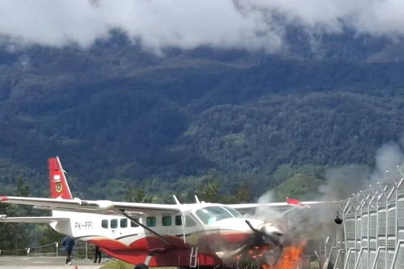 Timika (ANTARA) - Pesawat jenis Grand Caravan Aviasi Puncak Papua dengan nomor registrasi PK-PPI milik Pemerintah Kabupaten (Pemkab) Puncak, Papua Tengah, Senin pagi, terbakar di ujung Bandara Aminggaru, Ilaga, namun tidak ada korban jiwa dalam insiden itu.