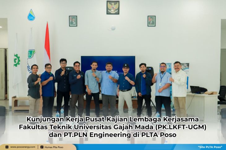 Poso, Sulteng (ANTARA) - Pusat Kajian Lembaga Kerjasama Fakultas Teknik Universitas Gadjah Mada (PK.LKFT-UGM) yang dipimpin oleh Tomy Listianto beserta tim, bersama PT PLN Enjiniring yang dipimpin oleh Arif Rahman dan rombongan, melakukan kunjungan kerja ke Pembangkit Listrik Tenaga Air (PLTA) Poso berkapasitas 515 MW, Kabupaten Poso, Provinsi Sulawesi Tengah.