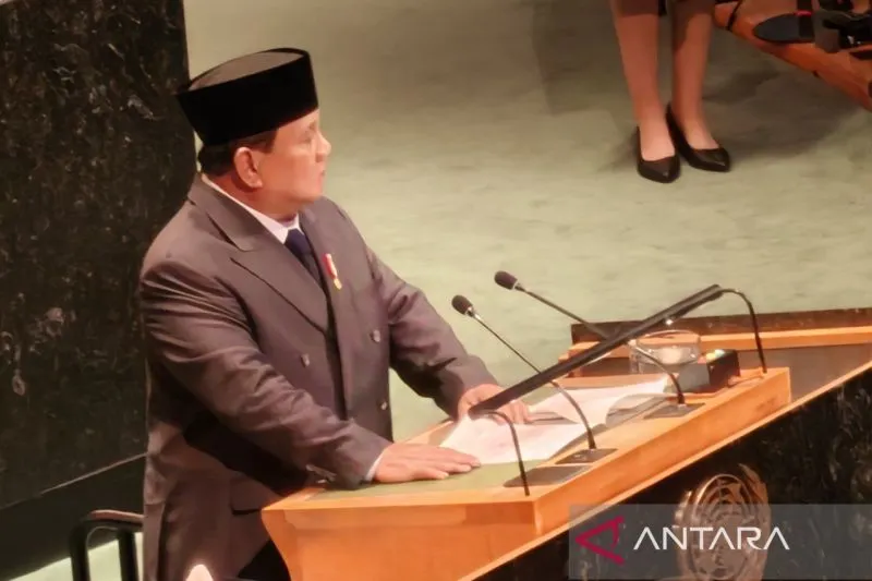 Presiden RI Prabowo Subianto memberikan pernyataan pada forum bertajuk "Konferensi Internasional Tingkat Tinggi untuk Penyelesaian Damai atas Masalah Palestina dan Implementasi Solusi Dua Negara" di Markas Besar Perserikatan Bangsa-Bangsa, New York, Amerika Serikat, Senin (22/9/2025). ANTARA/Fathur Rochman.