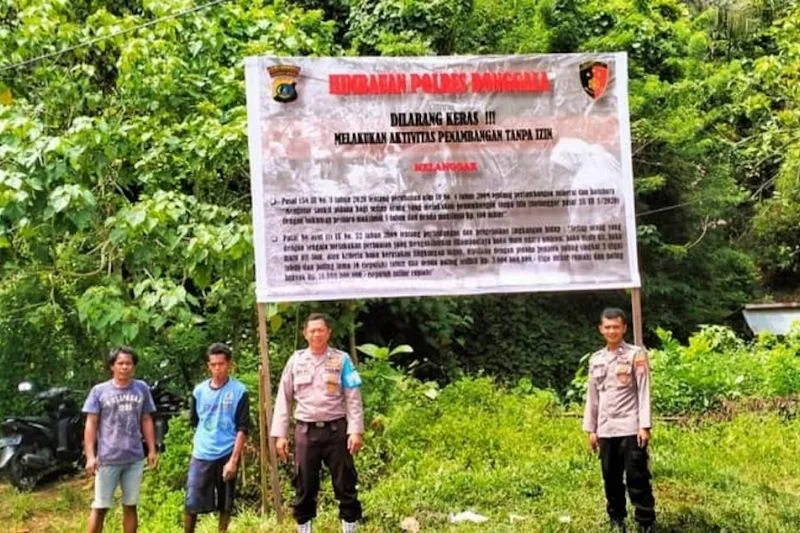 Imbauan untuk tidak melakukan pertambangan illegal di Desa Sabang, Kecamatan Dampelas, Donggala, Rabu (15/10/2025). (ANTARA/HO-Polres Donggala)