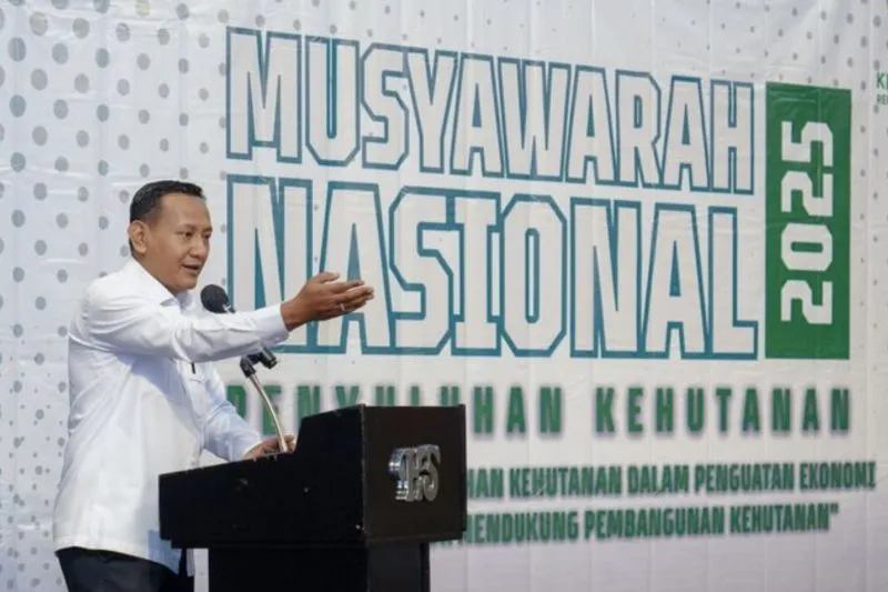 Wakil Menteri Kehutanan (Wamenhut) Rohmat Marzuki dalam Musyawarah Nasional (Munas) Penyuluhan Kehutanan 2025 di Jakarta dengan tema “Transformasi Penyuluhan Kehutanan dalam Penguatan Ekonomi Masyarakat untuk Mendukung Pembangunan Kehutanan”. (ANTARA/HO-Kemenhut RI)