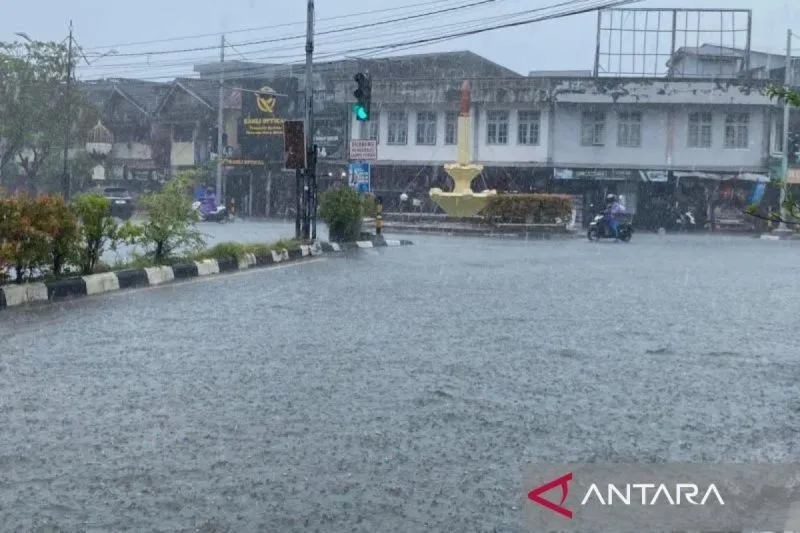 Ilustrasi - Hujan menyebabkan tergenangnya air di jalanan (ANTARA/T Dedi Iskandar)