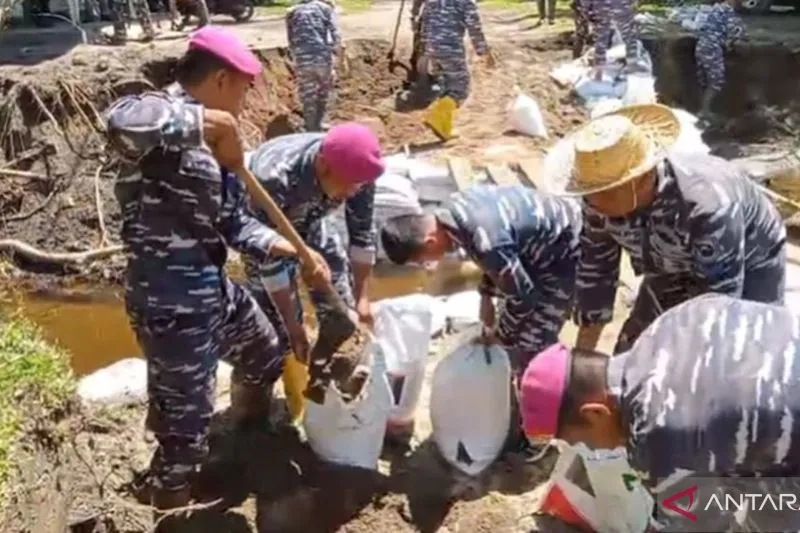Jakarta (ANTARA) - Jajaran TNI AL melalui Komando Daerah Angkatan Laut (Kodaeral) II Padang membangun jembatan darurat sambil mendistribusikan bantuan logistik untuk korban bencana banjir bandang di Nagari V Jorong, Sumatera Barat (Sumbar) pada Selasa (9/12).