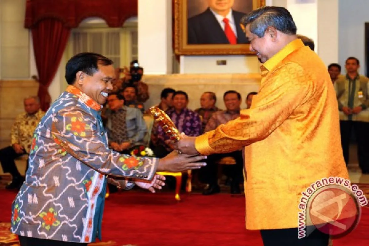 Pemilik Pabrik Tahu 'Afifah' di Kelurahan Nunu, Palu, Safran Rinaldi, S.Hut menerima Piala Kreasi Prima Mutu 2012 dari Presiden Susilo Bambang Yudhoyono di Istana Negara, Jakarta, Jumat (7/12). Pabrik Tahu Afifah merupakan IKM pertama di Sulteng yang menerima penghargaan ini atas sekses mereka dalam inovasi dan pengendalian mutu produksi. (FOTO: Istimewa/Safri Rinaldi)