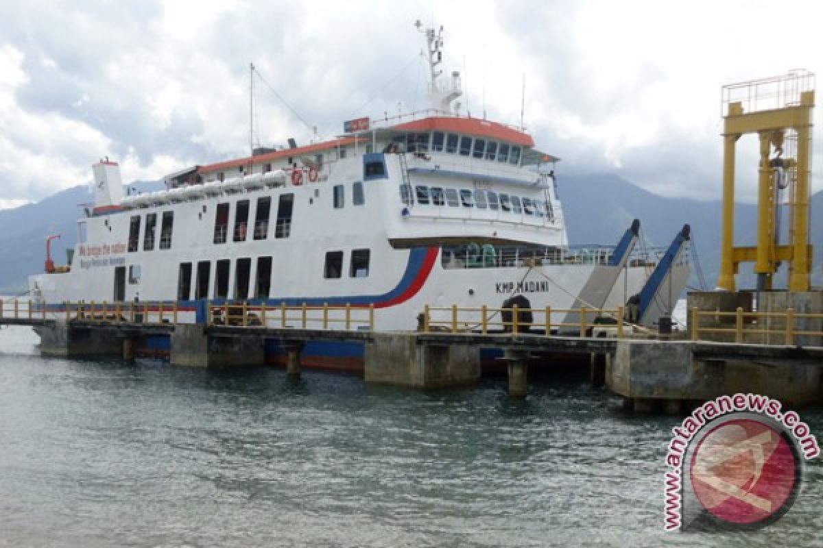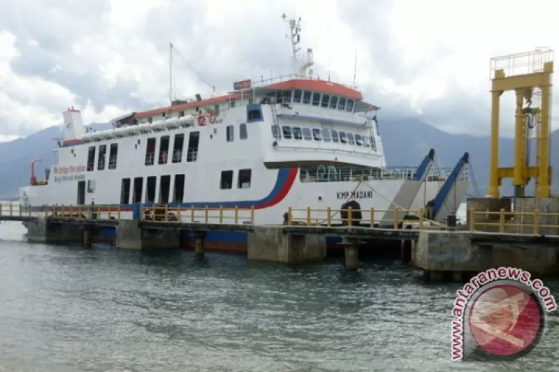 KMP Madani bertonase 1.150 GRT sandar di Pelabuhan Ferry Taipa, Rabu pagi (9/1), setelah dilarang berlayar ke Balikpapan karena cuaca buruk. KMP Madani merupakan satu-satunya kapalyang melayani rute tersebut dengan rekwensi dua kali dalam sepekan. (FOTO:ANTARASulteng.com/Rolex Malaha)