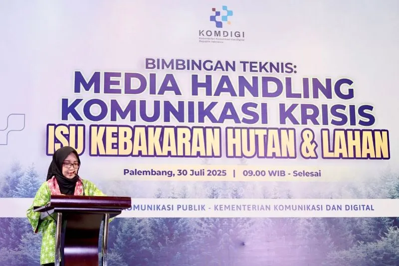 Ketua Tim Pengelolaan Komunikasi Strategis Pemerintah, Kemkomdigi membuka Bimbingan Teknis Media Handling Komunikasi Krisis Isu Kebakaran Hutan dan Lahan di Palembang (30/7)