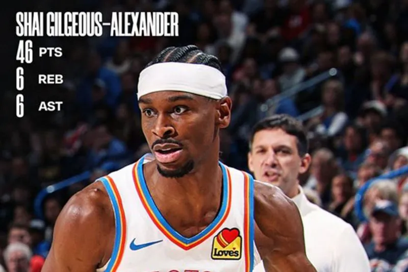 Gilgeous-Alexander memaksa pertandingan berlanjut ke overtime lewat tembakan dari dekat garis lemparan bebas saat buzzer waktu normal berbunyi, sebelum menambahkan sembilan poin pada babak tambahan untuk memastikan kemenangan Thunder.