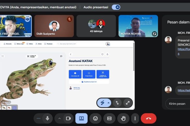 Salah satu praktik inovatif ditunjukkan melalui pembelajaran mata pelajaran Ilmu Pengetahuan Alam (IPA). Para guru diarahkan untuk membuat media pembelajaran berupa gambar hewan, seperti katak, yang didesain menggunakan AI menjadi visual tiga dimensi dengan konsep keberlanjutan. Selain itu, peserta juga mengembangkan animasi berbasis AI yang menyuarakan pesan perlindungan satwa, sebagai pendekatan kreatif dalam menanamkan kepedulian terhadap isu lingkungan dan konservasi ekologi kepada siswa.