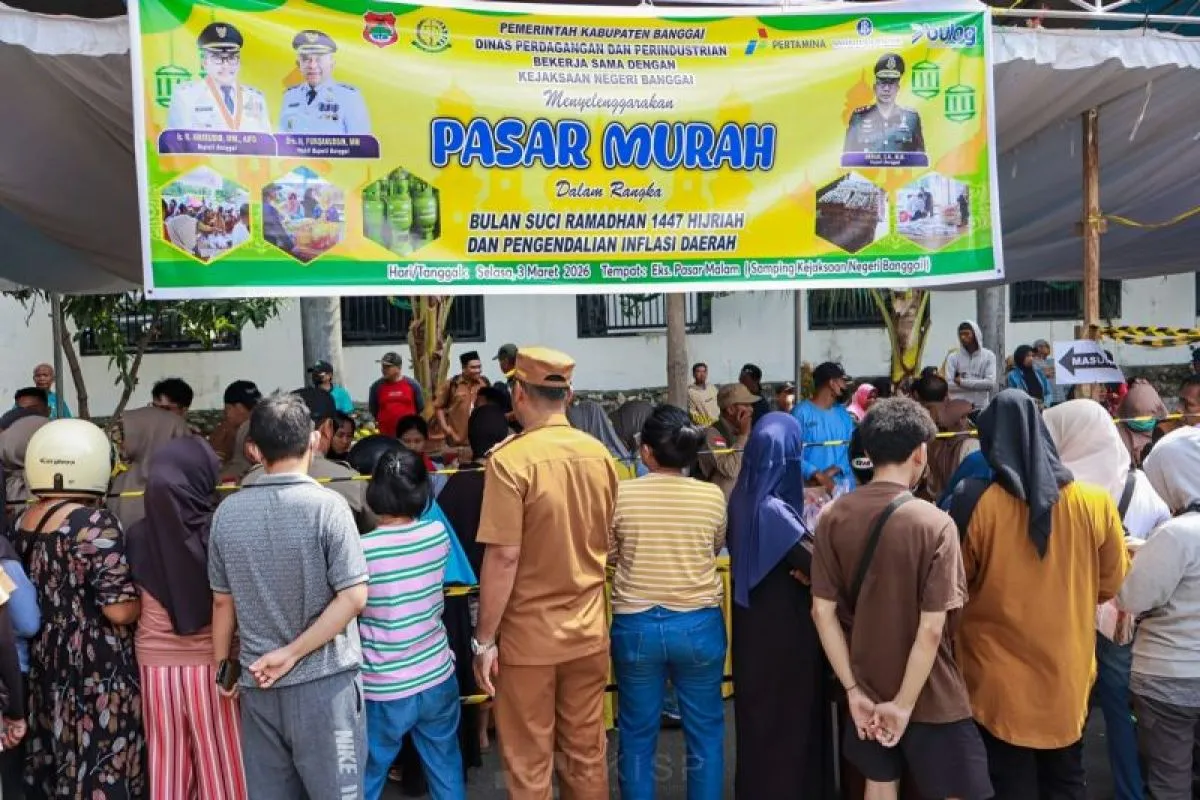 Banggai, Sulawesi Tengah (ANTARA) - Pemerintah Kabupaten Banggai, Sulawesi Tengah, menggelar pasar murah untuk menjaga stabilitas harga bahan kebutuhan pokok dan menekan laju inflasi selama bulan Ramadhan 1447 Hijriah.