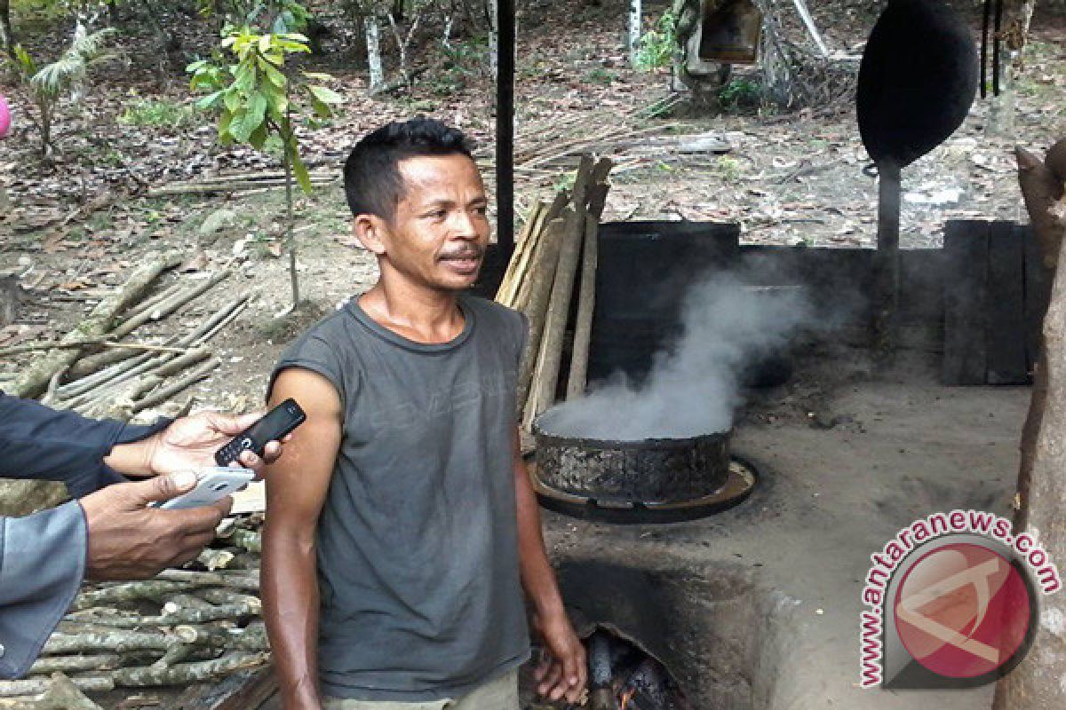 Salah satu petani aren di Desa Tuva, Arifin di lokasi usahanya yang berjarak sekitar 2km dari jalan raya di desa itu, Jumat mengaku telah berlangsung enam tahun terakhir ini memproduksi gula merah.