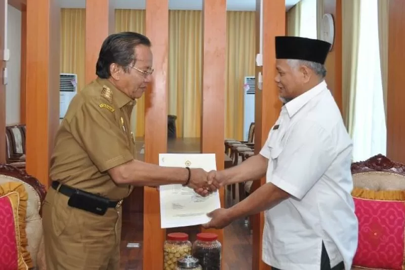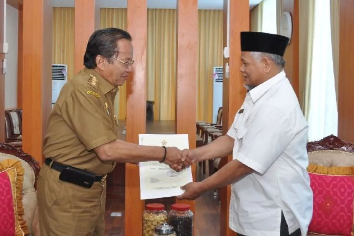 Sebelum meninggalkan ruang kerja gubernur, Kepala BPK Perwakilan Sulawesi Tengah Khabib Zainuri menyerahkan surat penugasan tim auditor BPK Sulteng kepada gubernur.