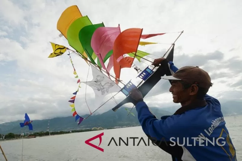 Warga main layangan sambil menunggu waktu berbuka puasa di Pantai Teluk Palu, Sulawesi Tengah, Senin (28/5). Pantai Teluk Palu yang terletak di jantung Kota Palu dan menjadi salah satu ikon wisata di Palu itu ramai dikunjungi warga untuk bersantai. Di bulan Ramadan ini banyak warga yang menghabiskan waktu untuk menunggui saat buka puasa di pantai itu. ANTARASulteng/Basri Marzuki