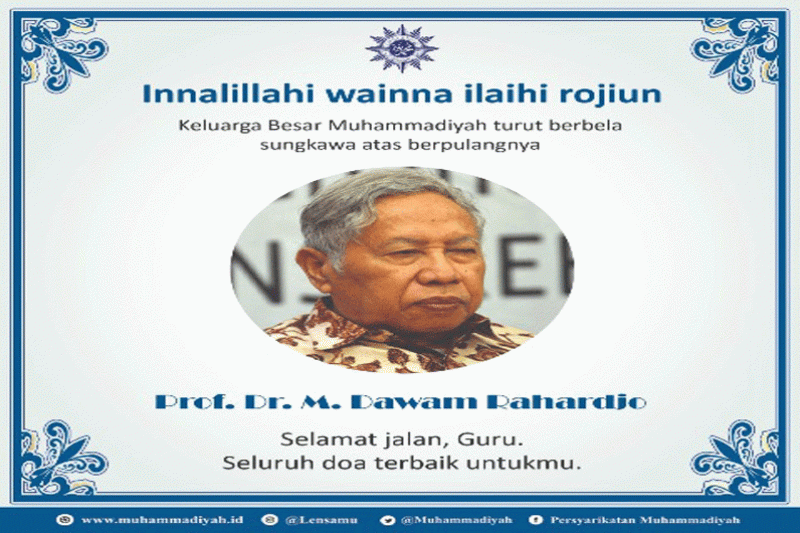 Staf Khusus Presiden bidang ekonomi Ahmad Erany Yustika dalam akun Twitternya @ahmarerany menyampaikan duka cita yang sangat mendalam atas wafatnya Dawam Rahardjo.
