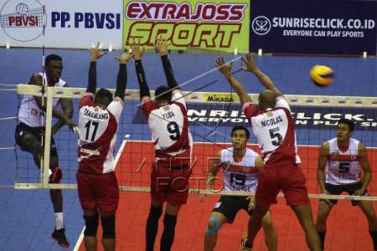 Kediri, (Antaranews Sulteng) - Tim putra Jakarta BNI 46 menumbangkan juara bertahan Surabaya Bhayangkara Samator dengan skor 3-1 (24-26, 25-12, 25-18, 26-24) pada laga babak empat besar putaran pertama Proliga 2019 di GOR Jayoboyo Kediri, Jawa Timur, Jumat malam.