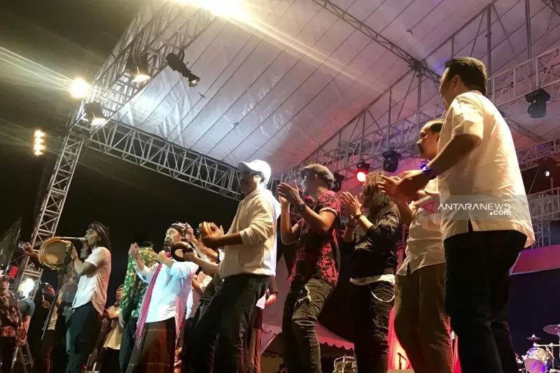 Surabaya (ANTARA) - Grup musik Slank mengajak Gubernur Jatim Khofifah Indar Parawansa, pakar hukum tata negara Prof Mahfud MD dan mantan Wagub Jatim Saifullah Yusuf (Gus Ipul) sepanggung bernyanyi bersama.