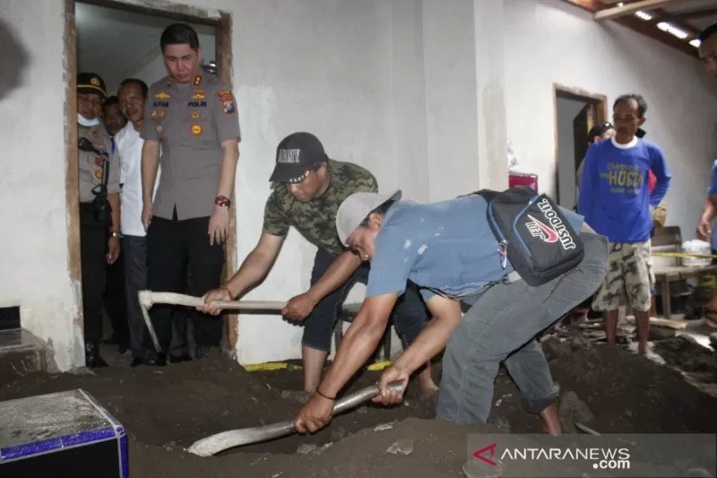 Jember, Jawa Timur (ANTARA) - Aparat kepolisian mengamankan istri dan anak korban pembunuhan yang dicor di bawah lantai mushalla di Desa Sumbersalak, Kabupaten Jember, Jawa Timur, Senin.