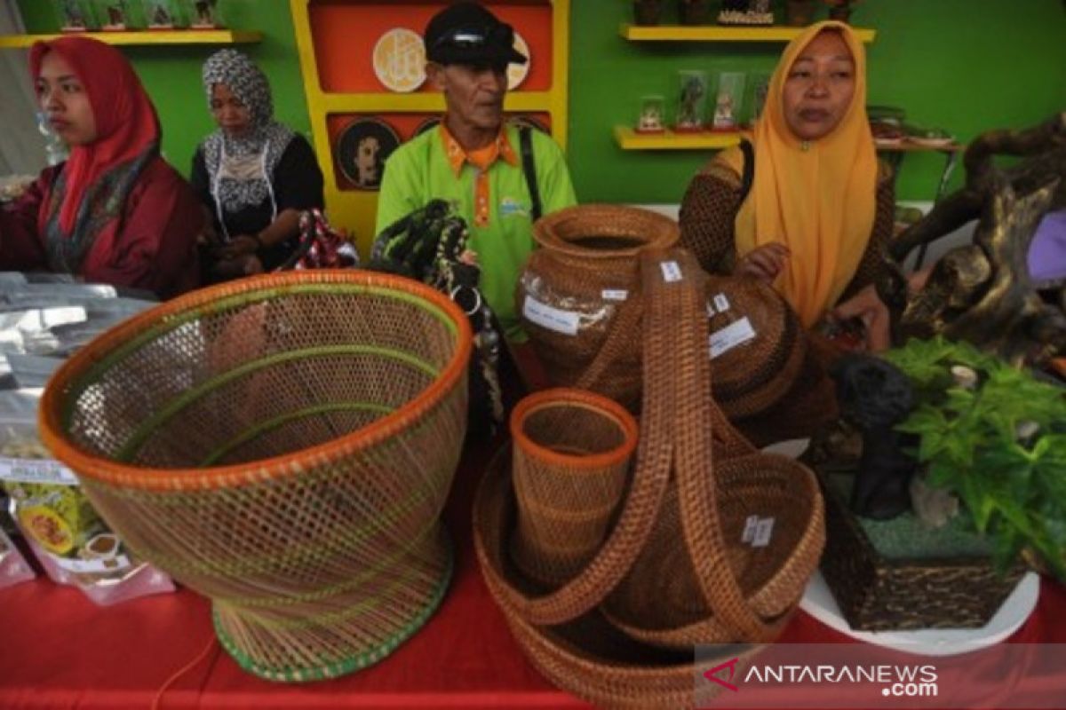 Sejumlah produk kerajinan ditampilkan pada Festival Pesona Donggala 2019 di Anjungan Gonenggati, Kabupaten Donggala, Sulawesi Tengah, Kamis (21/11/2019). Festival tersebut menampilkan beragam potensi wisata, seni dan budaya di Kabupaten Donggala serta diharapkan dapat kembali mendongkrak kunjungan wisatawan di daerah tersebut usai dilanda gempa dan tsunami pada 28 September 2018. ANTARA FOTO/Mohamad Hamzah/ama.