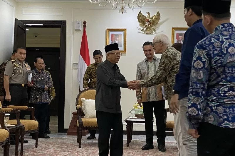 Jakarta (ANTARA) - Mantan Wakil Menteri Luar Negeri Dino Patti Djalal menemui Wakil Presiden Ma’ruf Amin di Jakarta, Selasa, untuk menyampaikan program pembelajaran antar-keyakinan atau (interfaith live-in) bagi para pemuka agama samawi, yakni Yahudi, Kristen dan Islam, dari berbagai negara.